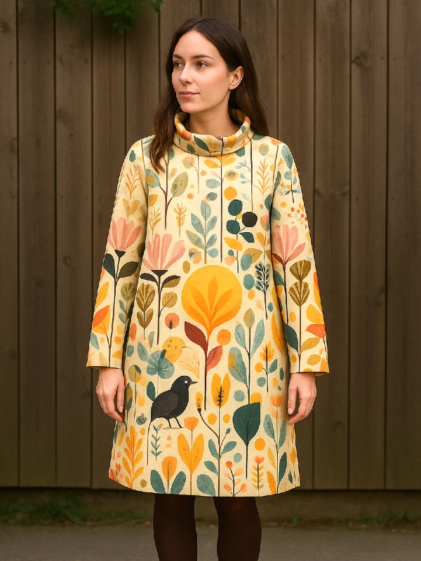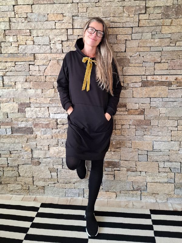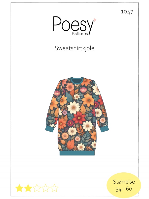 Med dette symønster kan du sy en dejlig lun og behagelig sweatshirtkjole.