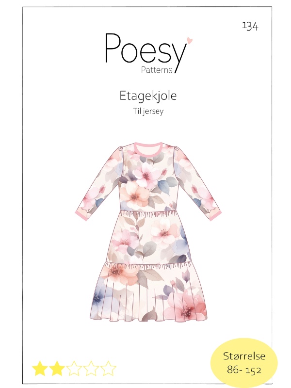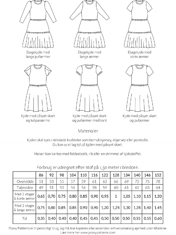 Symønster til skøn etagekjole med mange variationsmuligheder.’