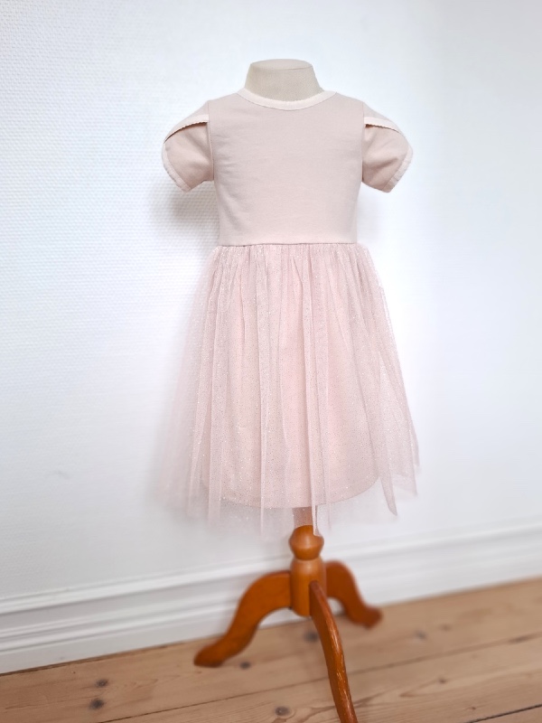 Du kan tilføje et eller flere lag tyl til kjolemodellen med påsyet skørt.